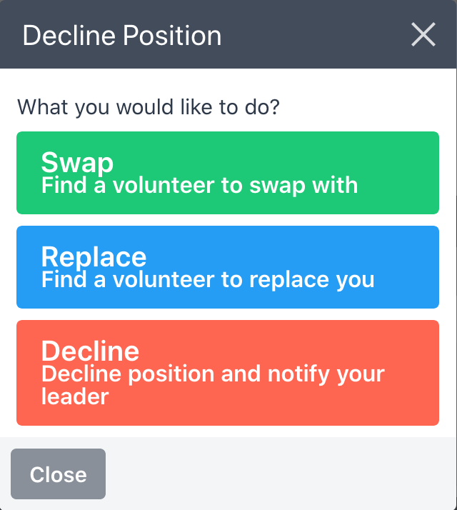 Tap the red cross next to your name to Decline the role for that day.